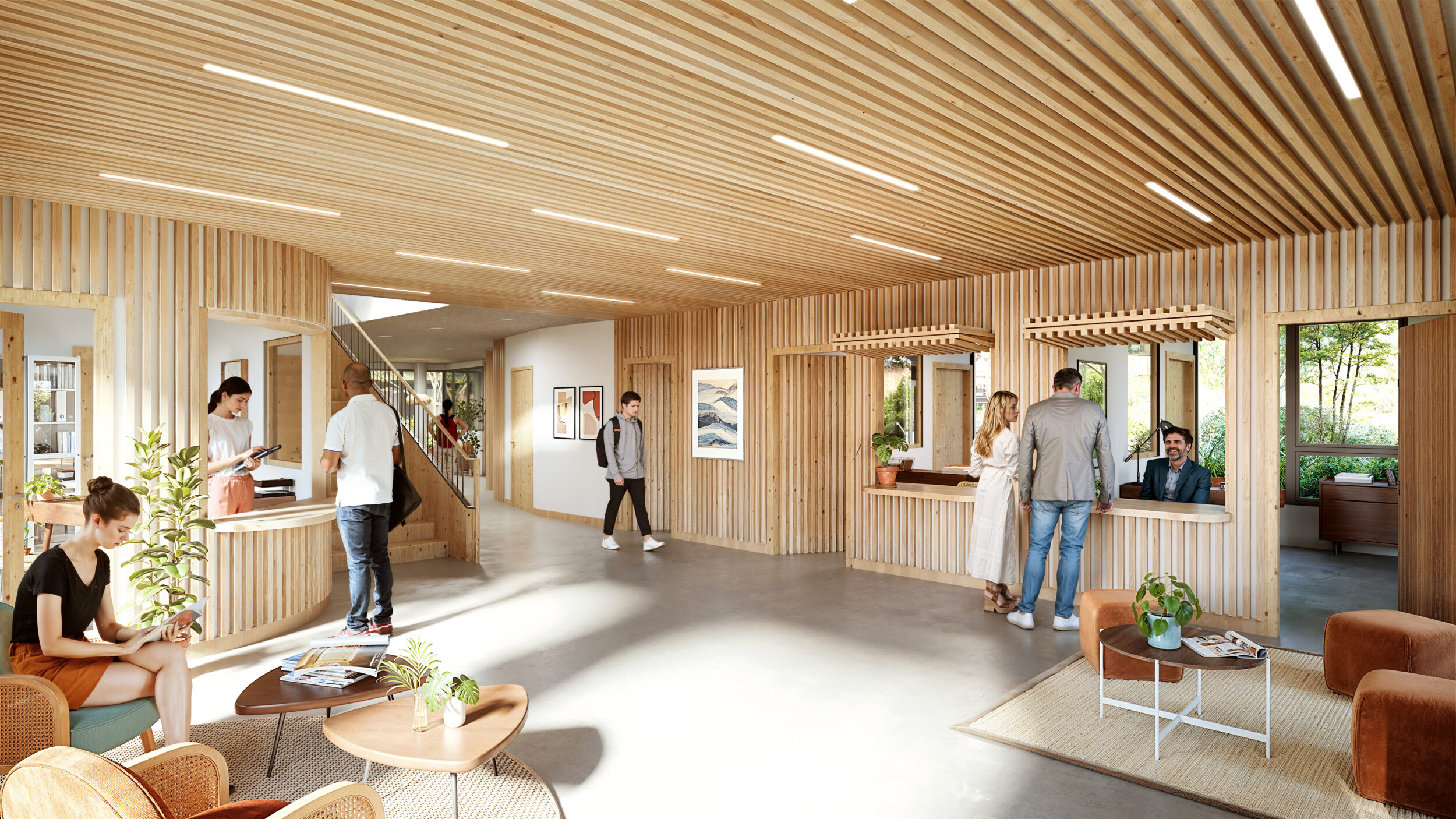 L’architecture s’organise autour d’un rez-de-chaussée circulaire, protecteur et lumineux, favorisant la lisibilité des usages et la qualité des parcours.