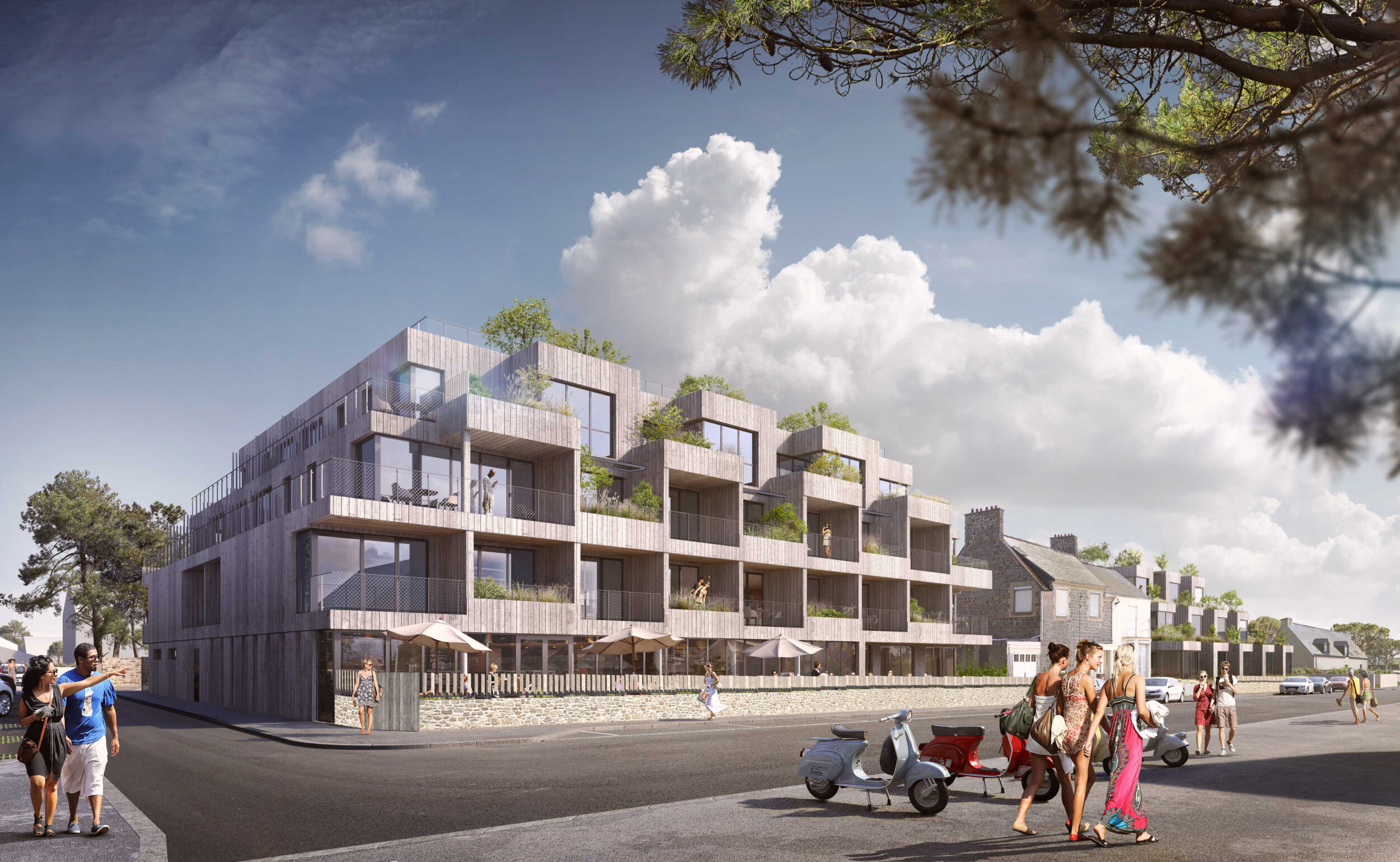 Les notions d’intégration à l’environnement sont ici essentielles, nous travaillons avec le paysage, la topographie et les vues du projet mais surtout de celles des riverains.