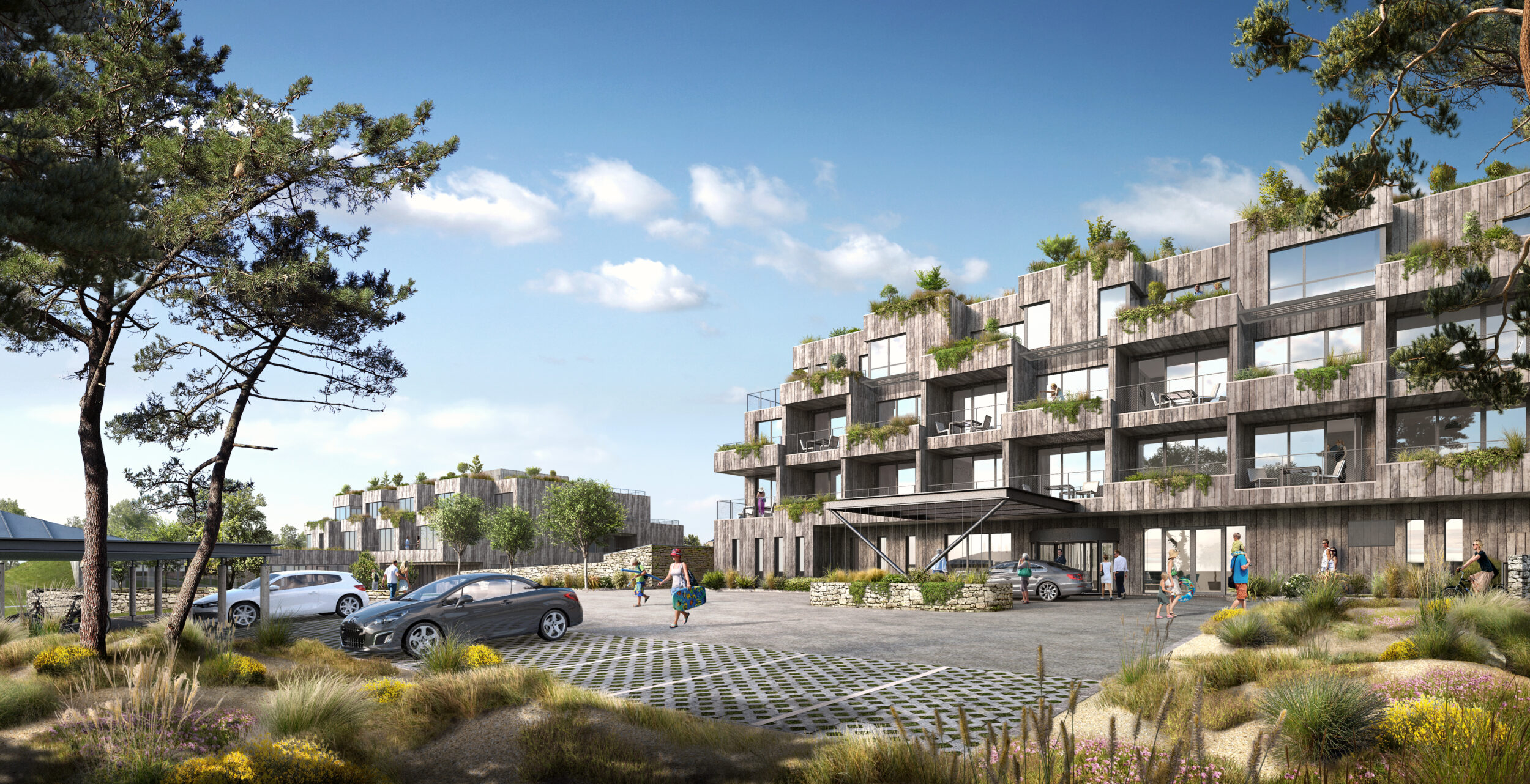 Nos ambitions pour ce projet dépassent le simple acte de construire, nous travaillons avec la matière du territoire pour substituer ce vide en proposant un paysage habité offrant pour les riverains et pour les habitants une valeur ajoutée.